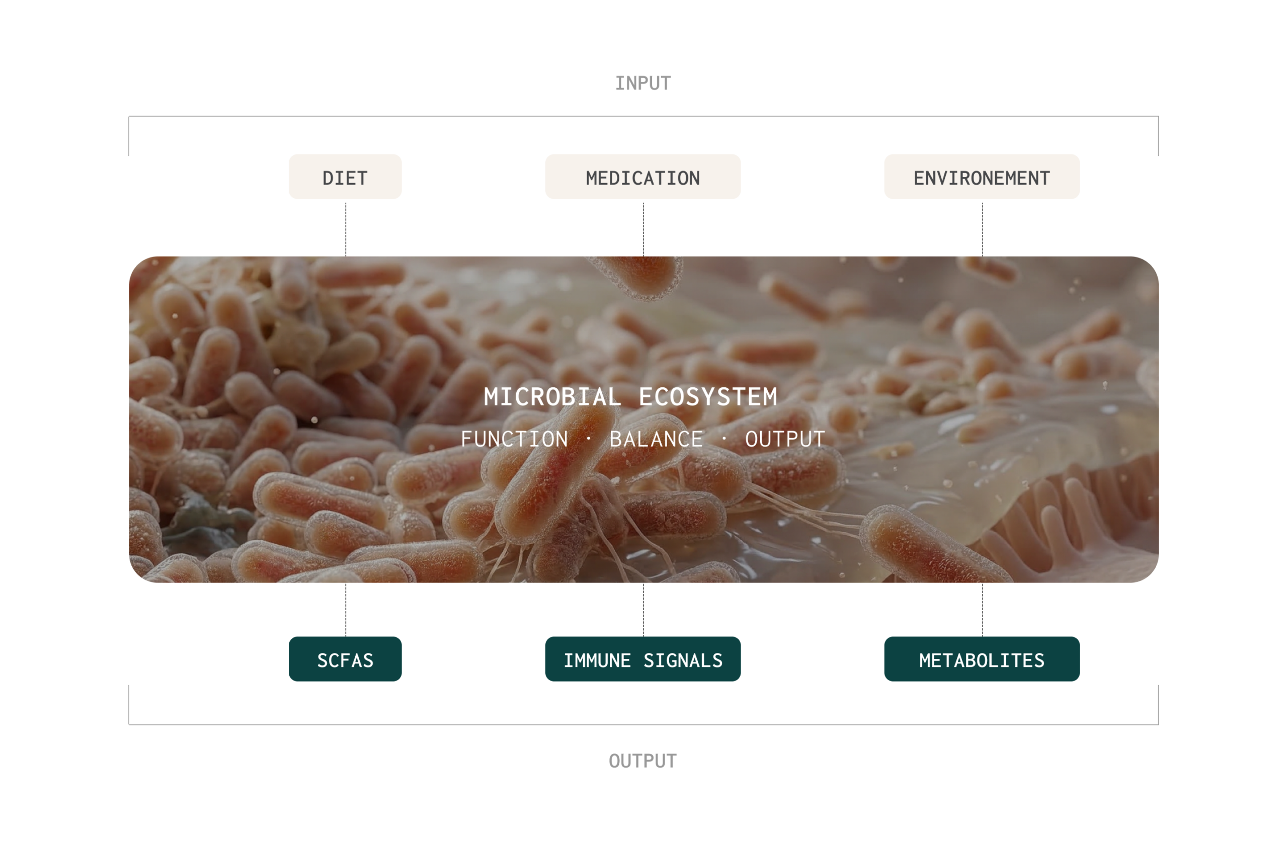 The microbiome is a dynamic ecosystem whose functions, not just its composition — shape human health. Diverse communities support colonisation resistance, diet determines metabolic outputs, and health outcomes depend on community cooperation and functional balance rather than individual species.1,3